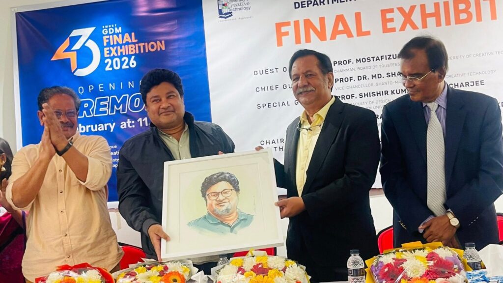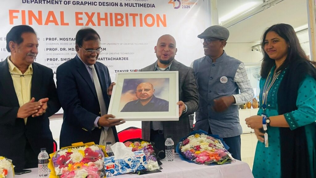 ০৭ ফেব্রুয়ারি ২০২৬, শনিবার রাজধানীর উত্তরায় ক্রিয়েটিভ দ্য আর্ট গ্যালারিতে আয়োজিত এই প্রদর্শনীর উদ্বোধন করেন বিশ্ববিদ্যালয়ের বোর্ড অব ট্রাস্টিজের চেয়ারম্যান বরেণ্য চিত্রশিল্পী অধ্যাপক মোস্তাফিজুল হক। অনুষ্ঠানে প্রধান ও বিশেষ অতিথি হিসেবে উপস্থিত ছিলেন যথাক্রমে উপাচার্য অধ্যাপক ড. মো. শাহ-ই-আলম, ফ্যাকাল্টি অব ডিজাইন অ্যান্ড টেকনোলজি অনুষদের ডিন অধ্যাপক শিশির ভট্টাচার্যসহ প্রচারণ কমিউনিকেশনস-এর ব্যবস্থাপনা পরিচালক শাহীন রহমান এবং সান কমিউনিকেশনস লিমিটেড-এর ক্রিয়েটিভ ডিরেক্টর তানভির সিকদার। উল্লেখ্য, এই দুইজন অত্র বিশ্ববিদ্যালয়ের জিডিএম ডিপার্টমেন্টের গর্বিত অ্যালামনাই। অনুষ্ঠানে গ্রাফিক ডিজাইন অ্যান্ড মাল্টিমিডিয়া বিভাগের সকল শিক্ষকবৃন্দ ও শিক্ষার্থীরা উপস্থিত ছিলেন।