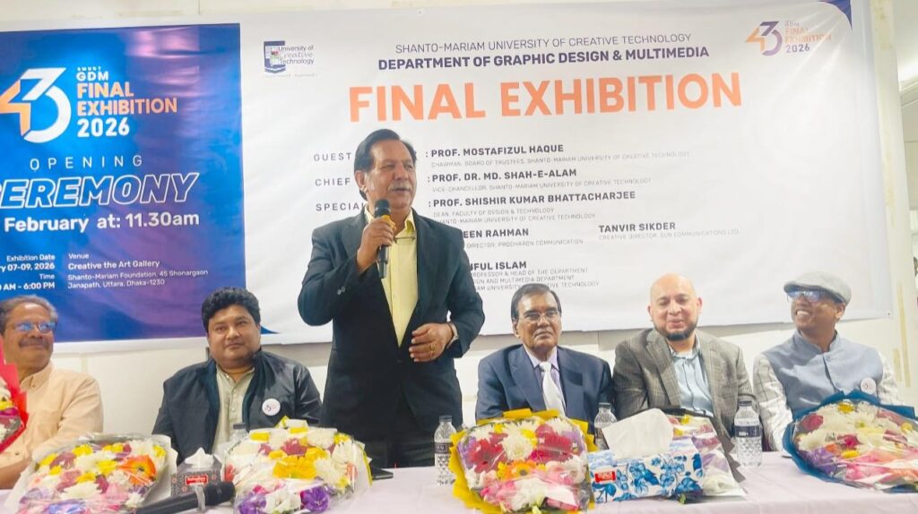 শান্ত-মারিয়াম বিশ্ববিদ্যালয়ে জিডিএম ডিপার্টমেন্টের পোর্টফোলিও ও এক্সিবিশন কোর্স প্রদর্শনী অনুষ্ঠিত।