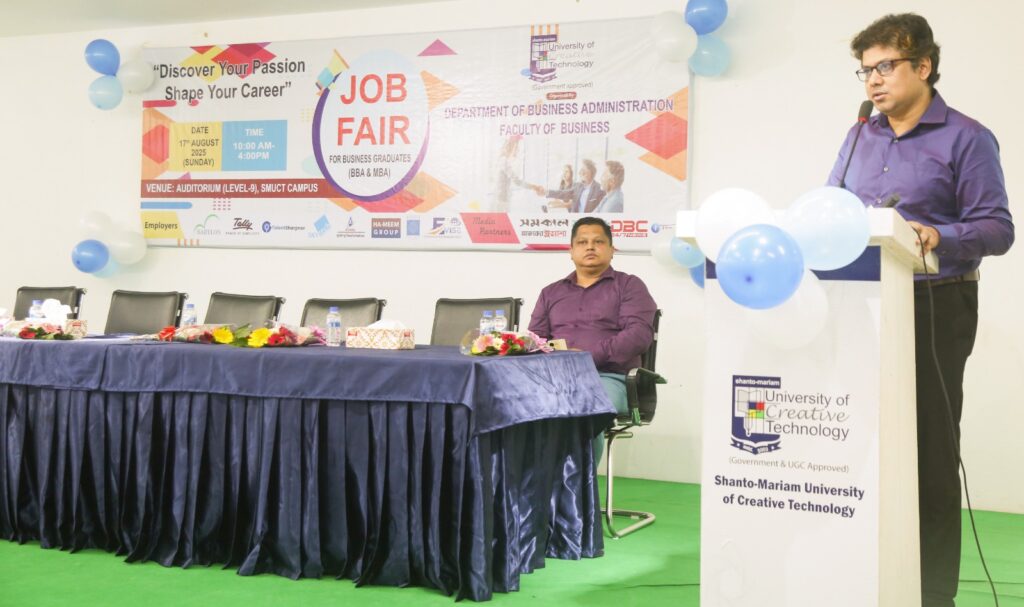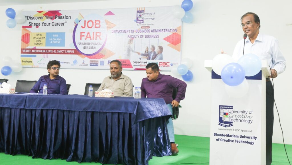 গতকাল ১৭ আগস্ট রোববার রাজধানীর উত্তরায় শান্ত-মারিয়াম ইউনিভার্সিটি অব ক্রিয়েটিভ টেকনোলজির ব্যবসায় প্রশাসন বিভাগের উদ্যোগে অনুষ্ঠিত হলো বর্ণাঢ্য ‘চাকরি মেলা-২০২৫’।