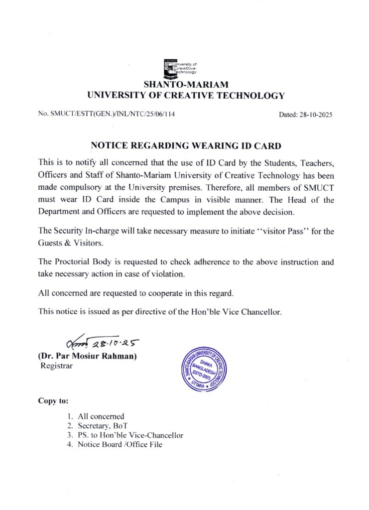 The Drama Club of the Department of English, Shanto-Mariam University of Creative Technology (SMUCT) has proudly secured the Runner-up position at the 11th DHE Inter-University Student Conference and Cultural Competition 2025, organized by the University of Liberal Arts Bangladesh (ULAB). Their play, “What is Beauty and Who is the Beast?”, impressed the judges with its […]