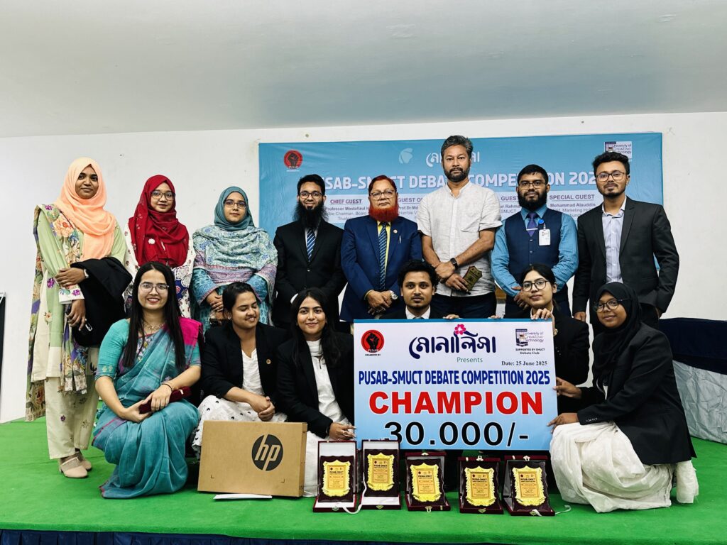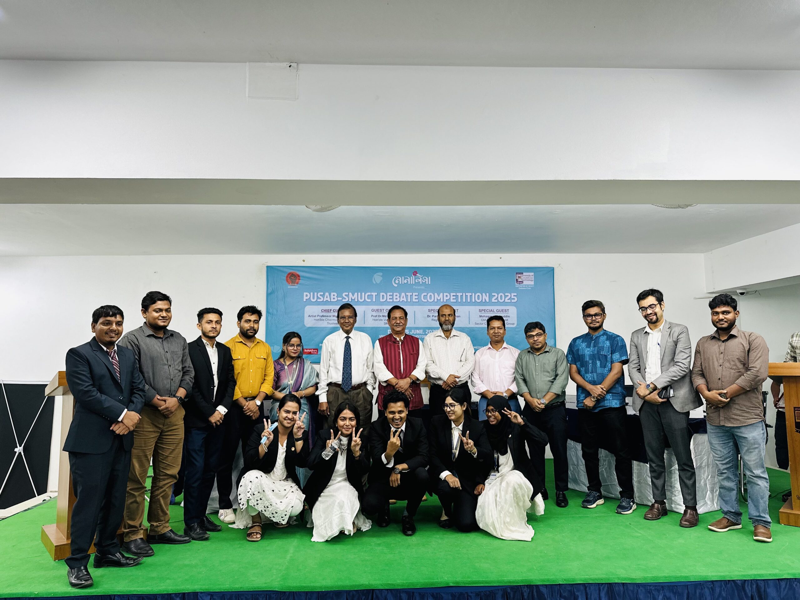 In a resounding display of intellect, articulation, and teamwork, the Department of Law of Shanto-Mariam University of Creative Technology (SMUCT) has emerged as the Champion of the prestigious Monalisa Presents PUSAB–SMUCT Debate Competition 2025, held at the permanent campus of SMUCT.