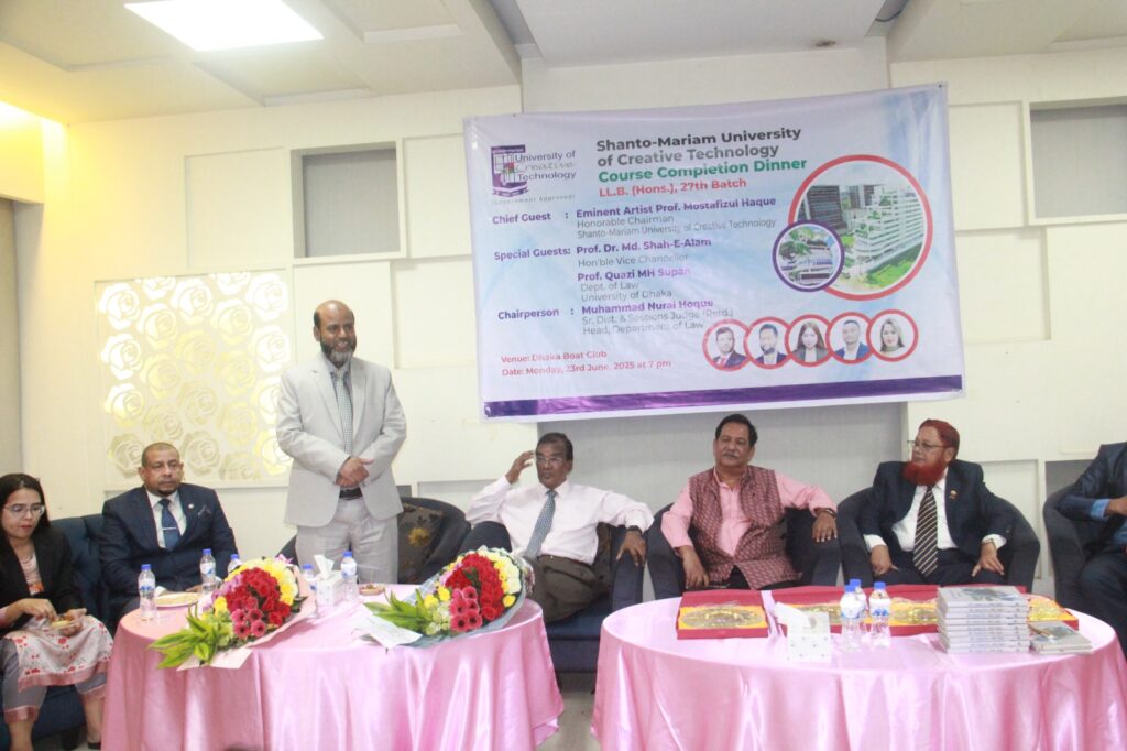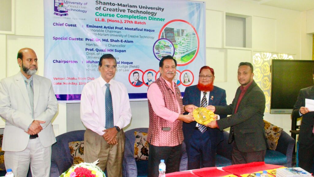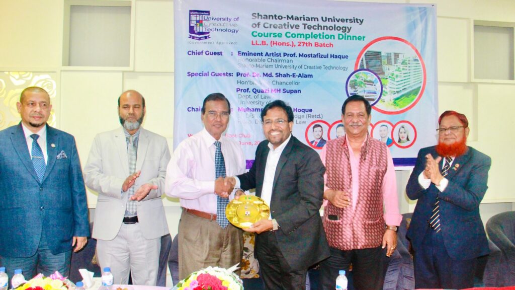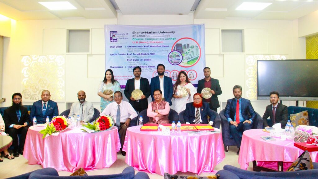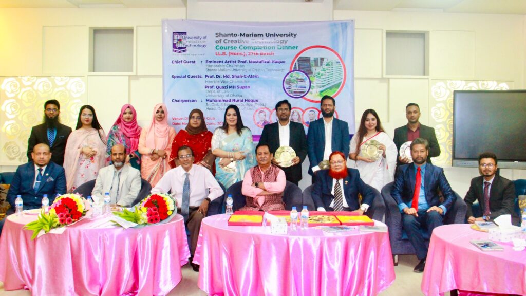 Department of Law of Shanto-Mariam University of Creative Technology is delighted to announce the successful hosting of the LL.B. (Hons.) Course Completion Dinner for the 27th batch held at the elegant Uttara Club, Dhaka. The evening marked a significant academic milestone and served as a heartfelt celebration of the students’ hard-earned achievements.