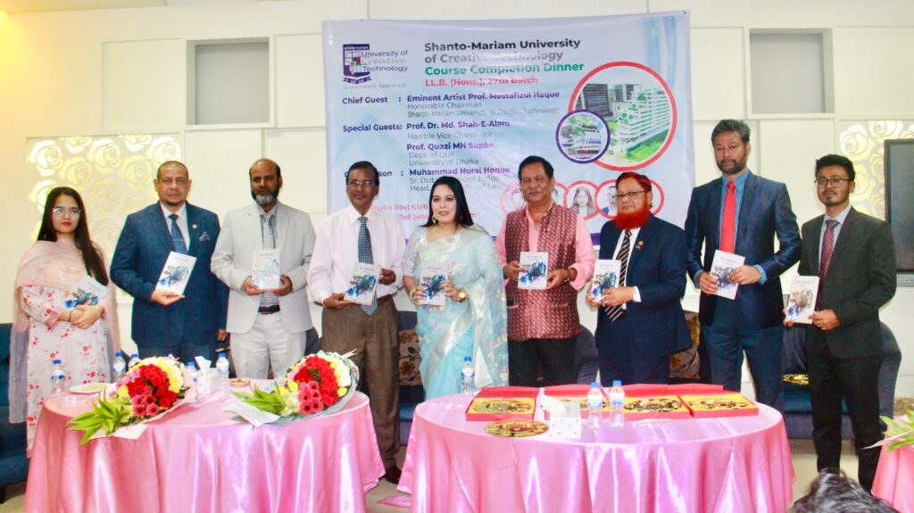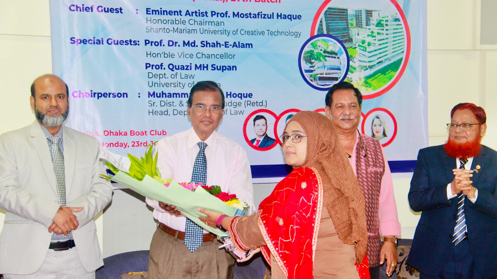 The distinguished gathering was graced by Eminent Artist Prof. Mostafizul Haque, Honorable Chairman of Shanto-Mariam University, as the Chief Guest. Adding further prestige to the occasion, Prof. Dr. Md. Shah-E-Alam, Hon’ble Vice Chancellor of the University attended as Special Guest. The event was chaired by Muhammad Nural Hoque, respected Senior District & Sessions Judge (Retd.) and Head of the Department of Law.