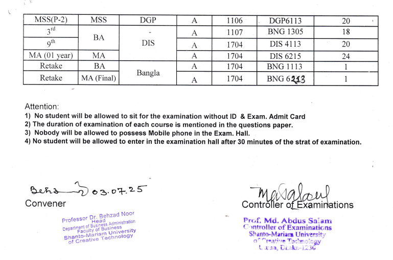 Mid-Term Exam Routine for Spring-2025